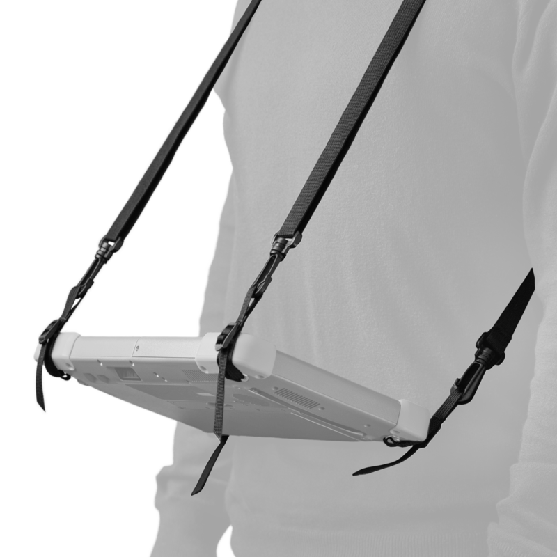 Регульований чотирьохточковий ремінь дозволяє зручно переносити планшет без використання рук, фіксуючись на спині пристрою. Ідеальне рішення для тривалої роботи в полі або при пересуванні.
