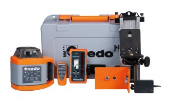 Повністю автоматичний ротаційний нівелір NEDO SIRIUS 1HV із цифровим лазерним приймачем ACCEPTOR MAXX із міліметровим дисплеєм і міцним затискачем для рейки та Easy Control – керування одним натисканням кнопки для надзвичайно легкого використання.
